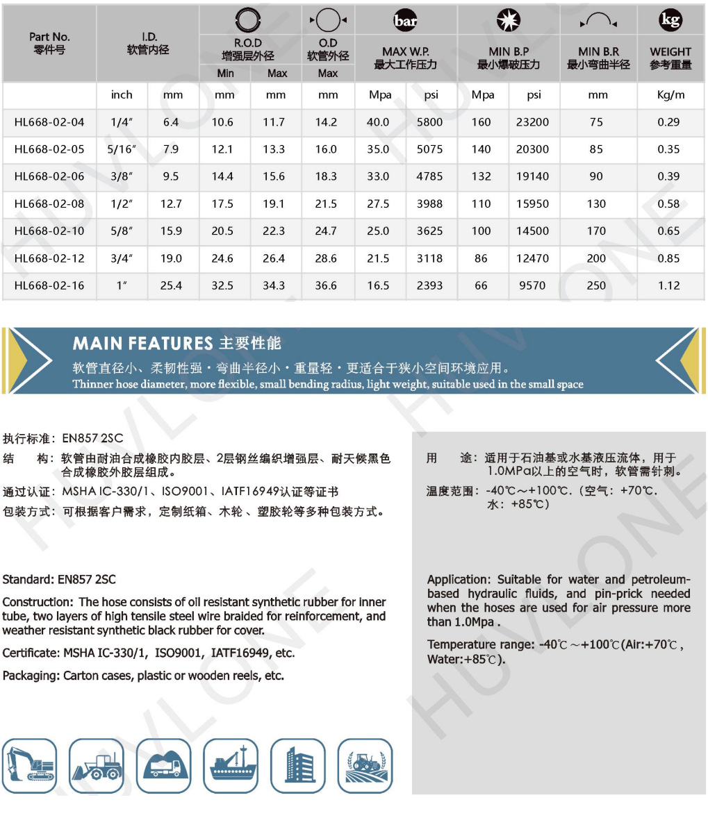 產(chǎn)品用途:適用于石油基或水基液壓流體,用于1.0MPa以上的空氣時,軟管需針刺。