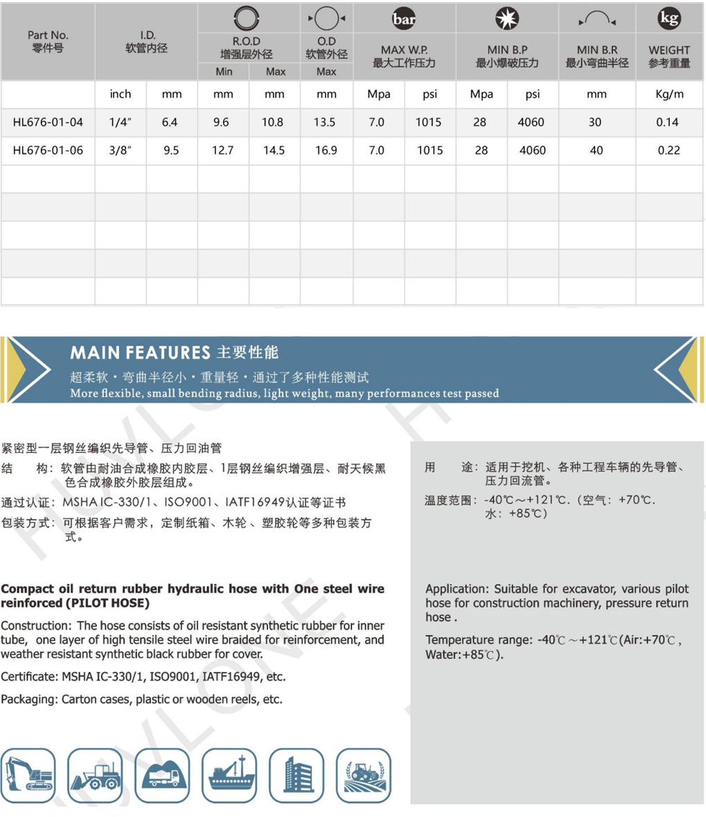 產品用途:適用于挖機、各種工程車輛的先導管、壓力回流管。