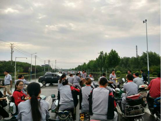 原來,2016年7月20日漯河在經(jīng)歷了一夜的大暴雨之后,東方紅路東段(從中山路與東方紅路交叉口到立達(dá)創(chuàng)業(yè)園西大門)積水嚴(yán)重,大部分地方水深已經(jīng)沒過腳踝,電動(dòng)車及部分汽車無法通行,阻隔了員工上班的路。
