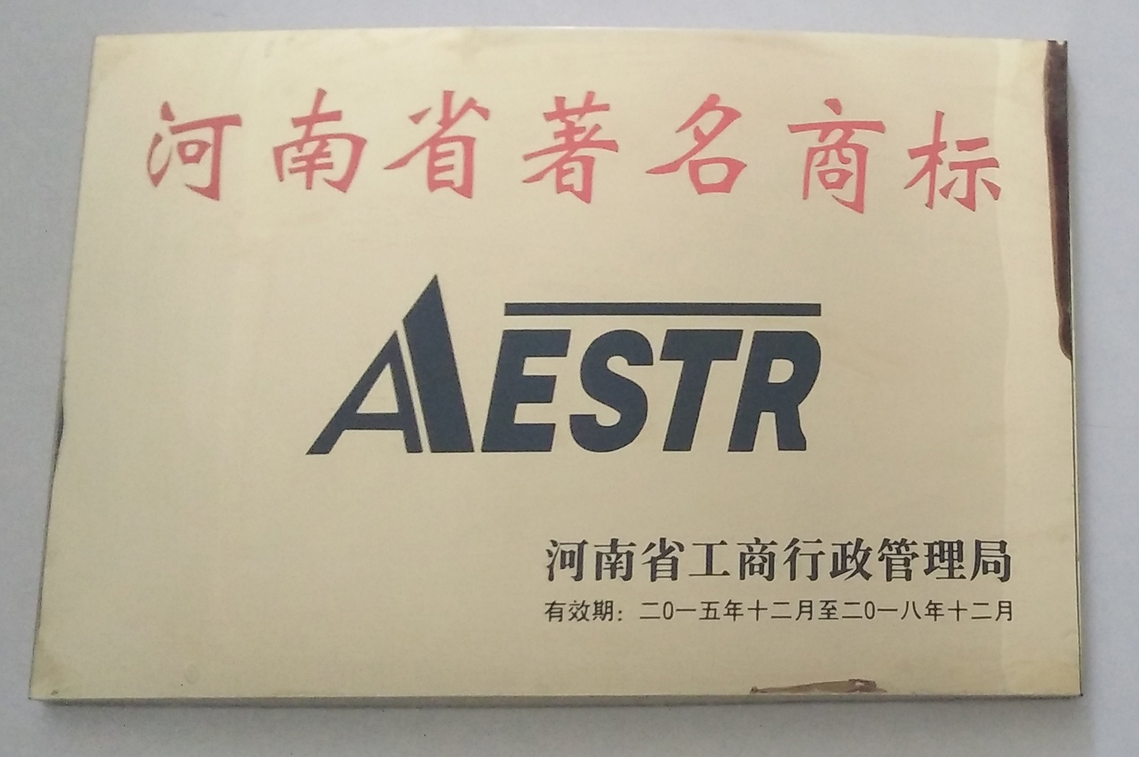 河南省著名商標(biāo)證書掃描件