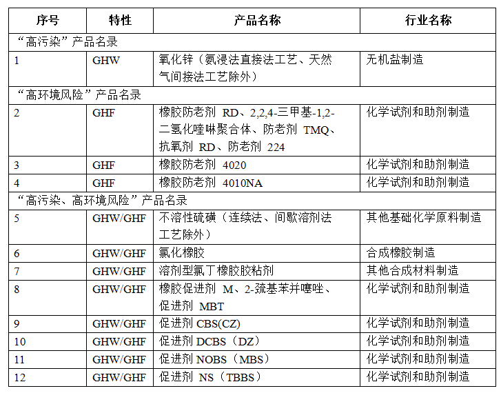 由于歷史原因和存在溝通問題,與橡膠輪胎行業(yè)有關(guān)的多個(gè)產(chǎn)品列入“高污染、高環(huán)境風(fēng)險(xiǎn)”產(chǎn)品名錄,一直保留到現(xiàn)在。
