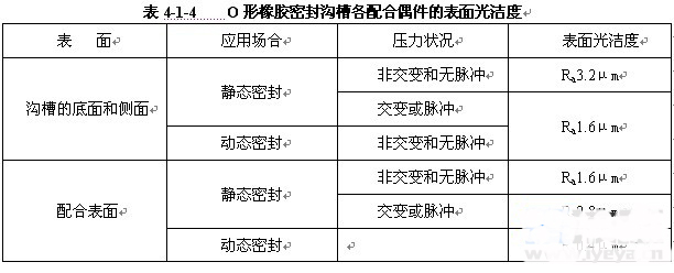 因?yàn)镺形橡膠密封圈是安裝在各種溝槽中使用,現(xiàn)將安裝溝槽情況列于表4-1-3。