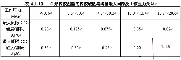 O型圈的硬度與溝槽最大間隙及工作壓力關(guān)系