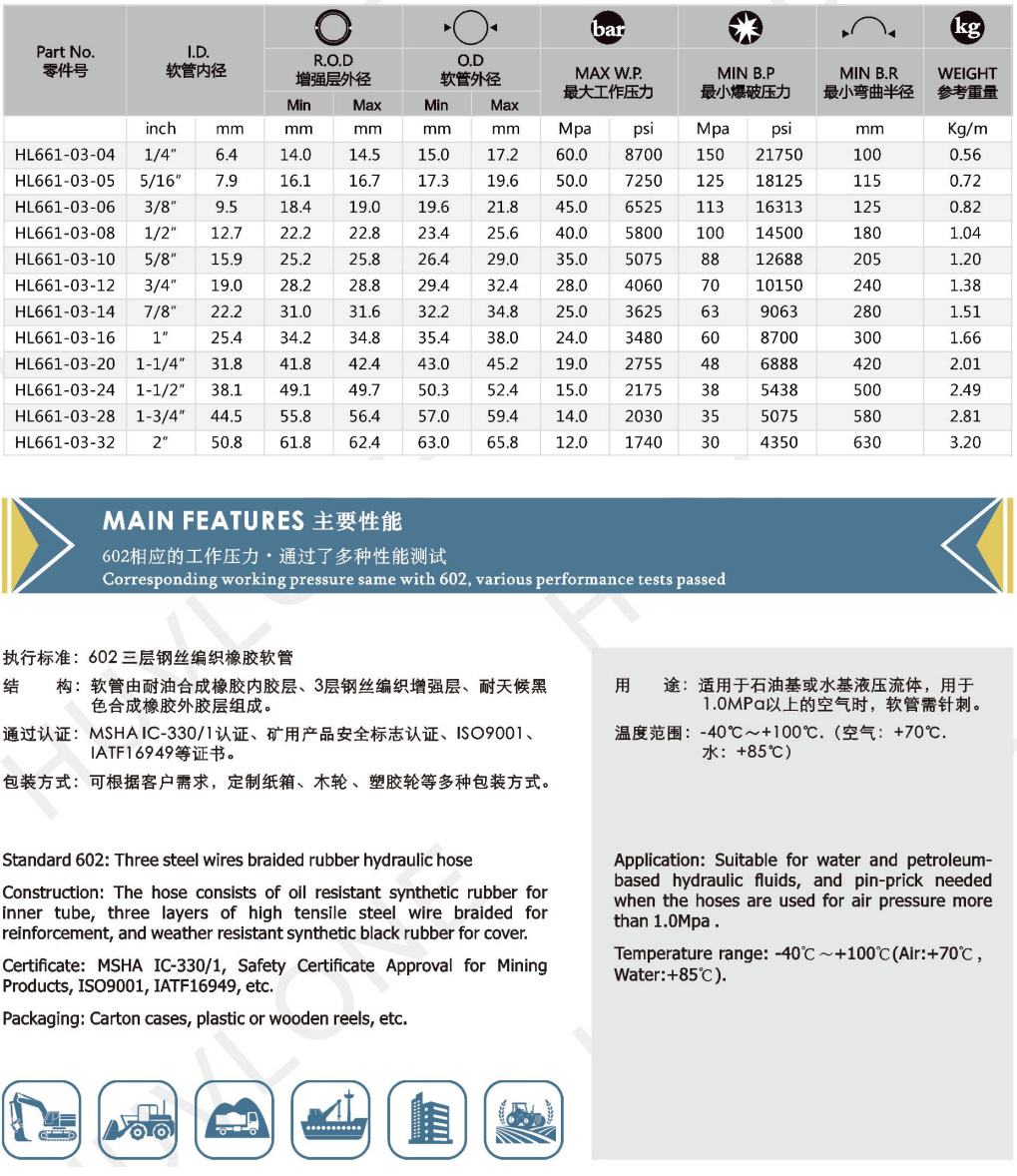 Product Usage:Suitable for water and petroleum-based hydraulic fluids,and pin-prick needed when the hoses are used for air pressure more than 1.0Mpa .
