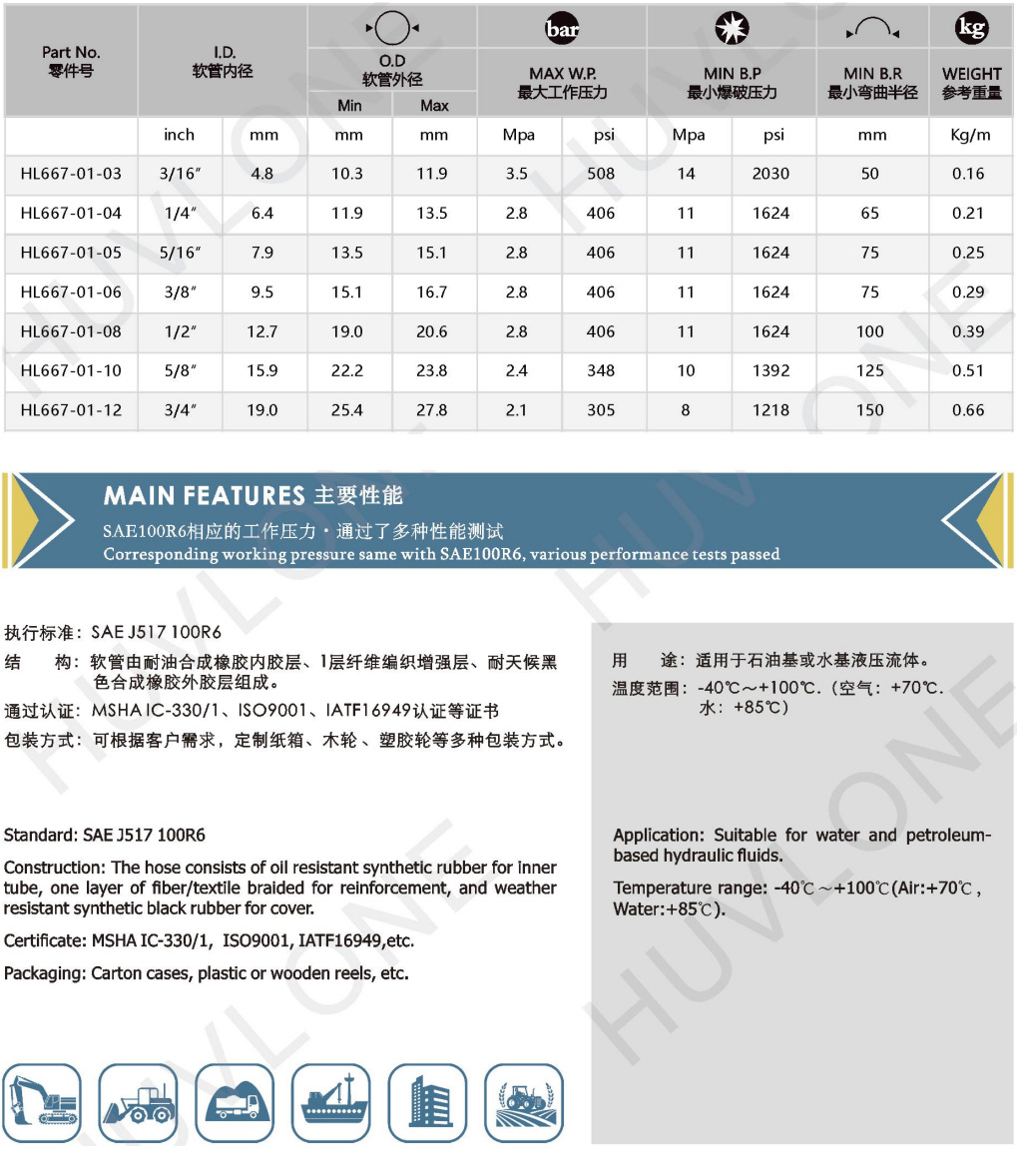 SAE J517 100R6: Single textile reinforced rubber hydraulic hose