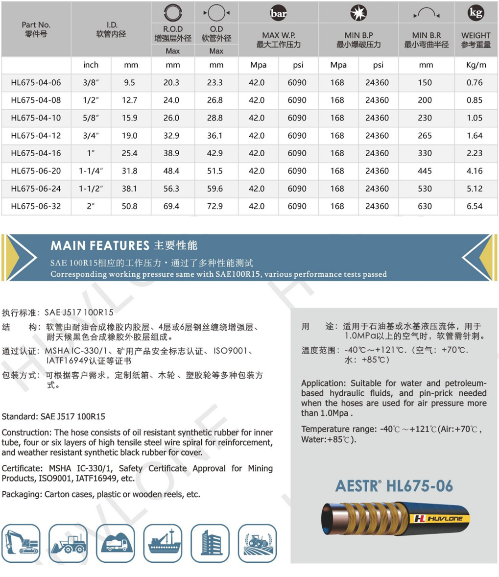 Product Usage:Suitable for water and petroleum-based hydraulic fluids,and pin-prick needed when the hoses are used for air pressure more than 1.0Mpa.