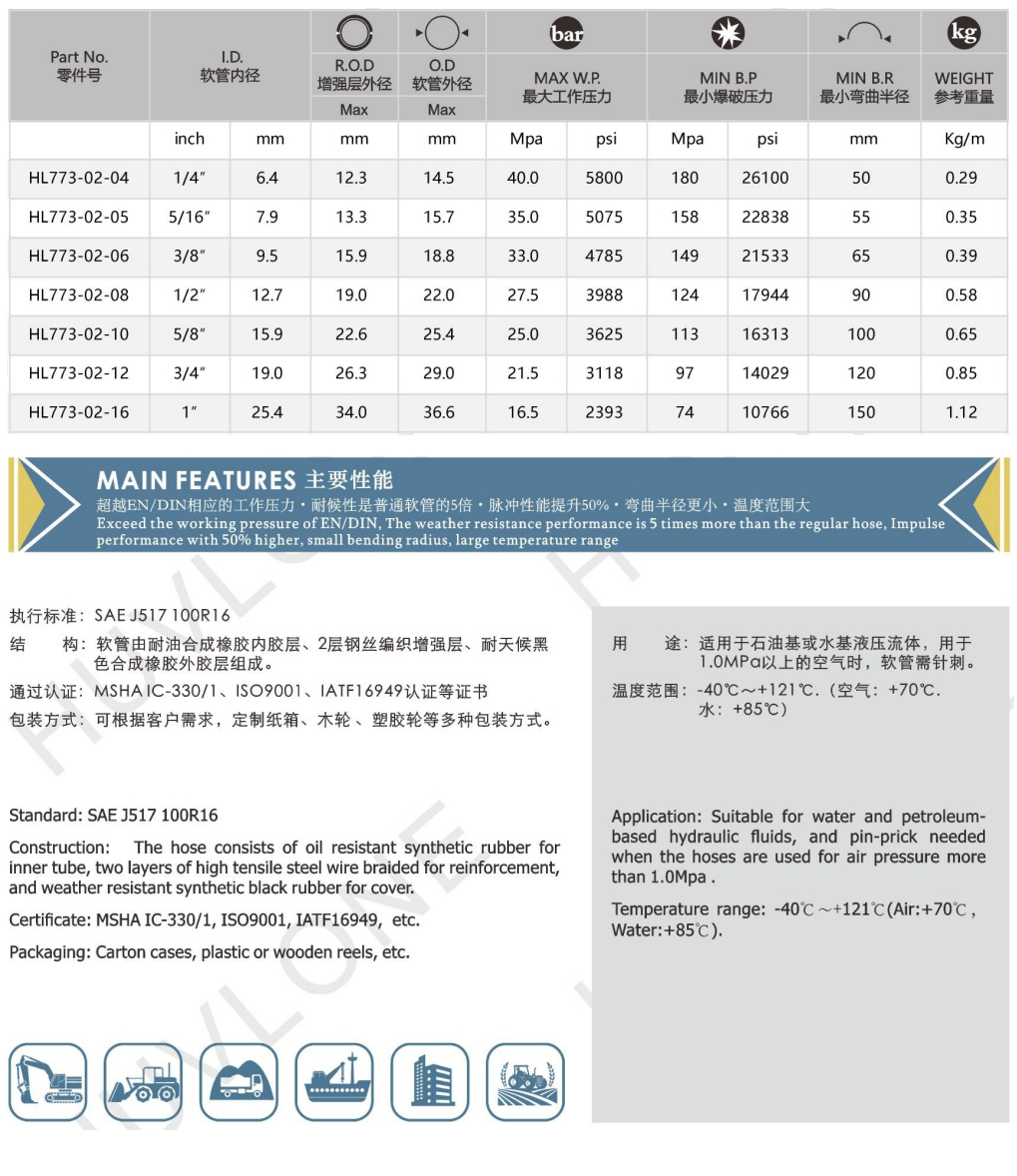 Product Usage:Suitable for water and petroleum-based hydraulic fluids,and pin-prick needed when the hoses are used for air pressure more than 1.0Mpa.