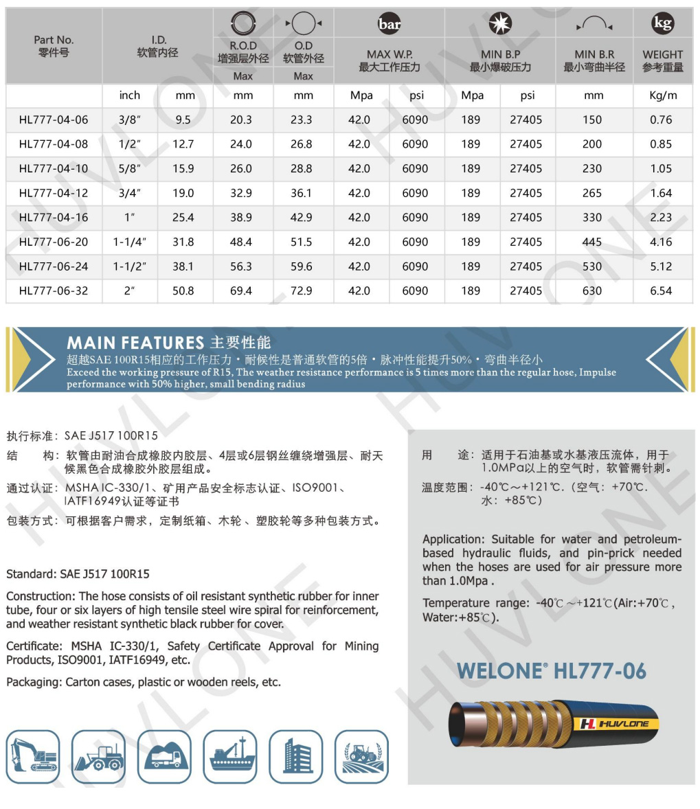 Product Usage:Suitable for water and petroleum-based hydraulic fluids,and pin-prick needed when the hoses are used for air pressure more than 1.0Mpa.
